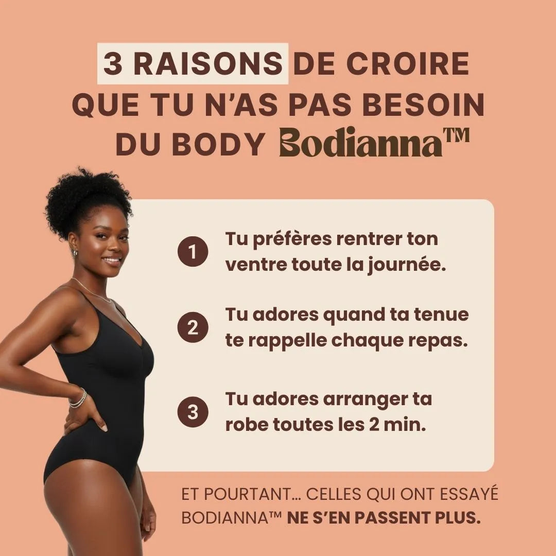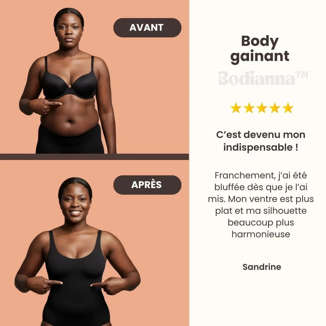 Enfile ton Body Bodianna™ et vois la différence en quelques secondes : ta silhouette est sculptée, ta taille redessinée et ton ventre plus plat, grâce à sa technologie de compression intelligente.