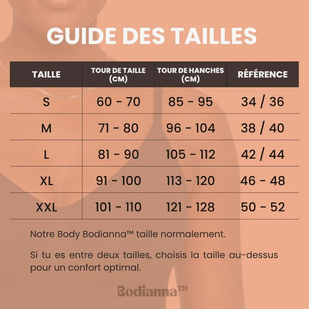 Le Body Bodianna™ est conçu avec une technologie de compression intelligente : il affine ta taille sans jamais t’étouffer.